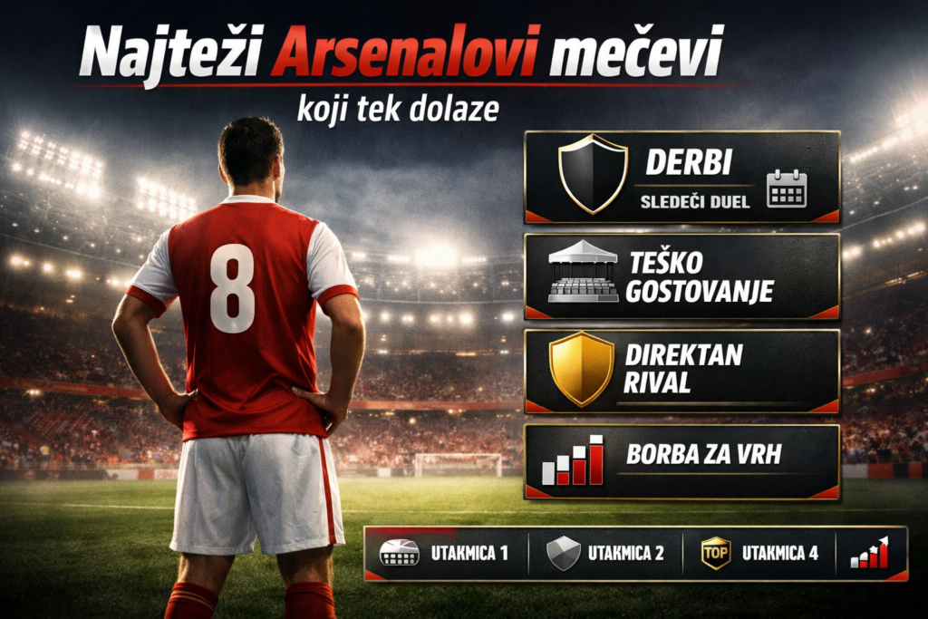 Zato tema najteži Arsenalovi mečevi nije samo pitanje kvaliteta protivnika. Ovde je jednako važan i kontekst, odnosno kada taj meč dolazi, koliko energije nosi, kakav je pritisak tabele i da li Arsenal mora da igra pod opterećenjem trofejne trke na tri fronta. Upravo to završnicu čini opasnijom nego što na prvi pogled deluje.